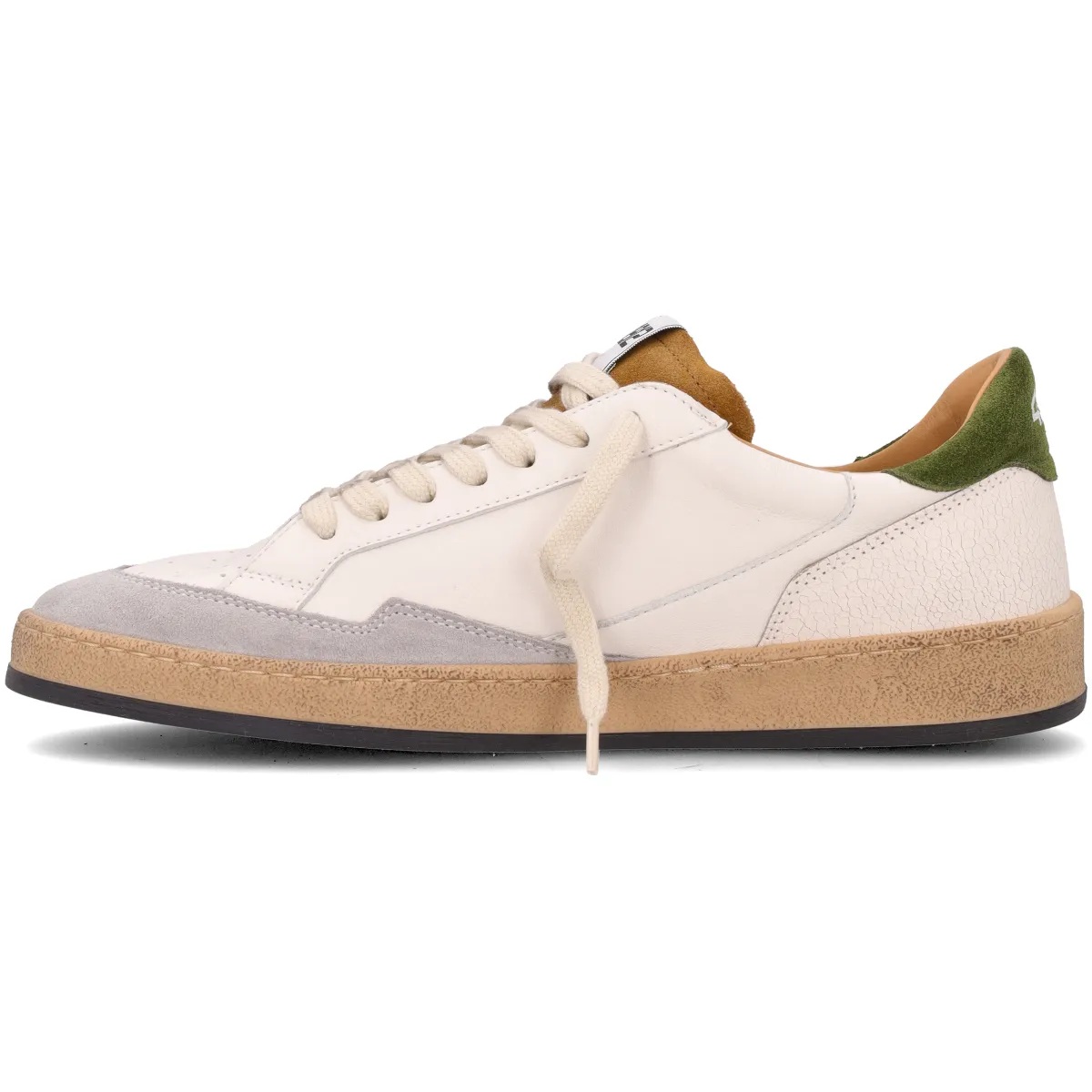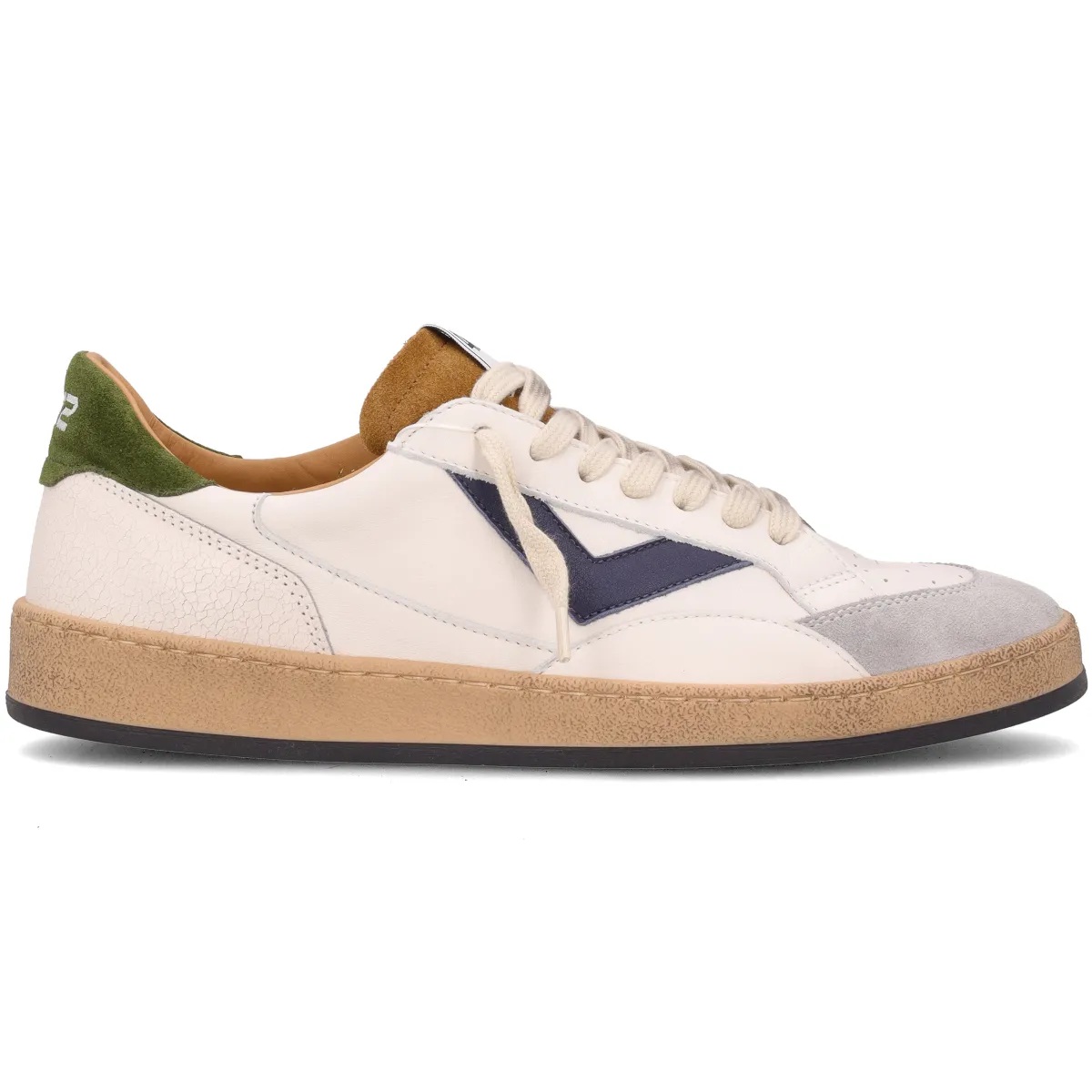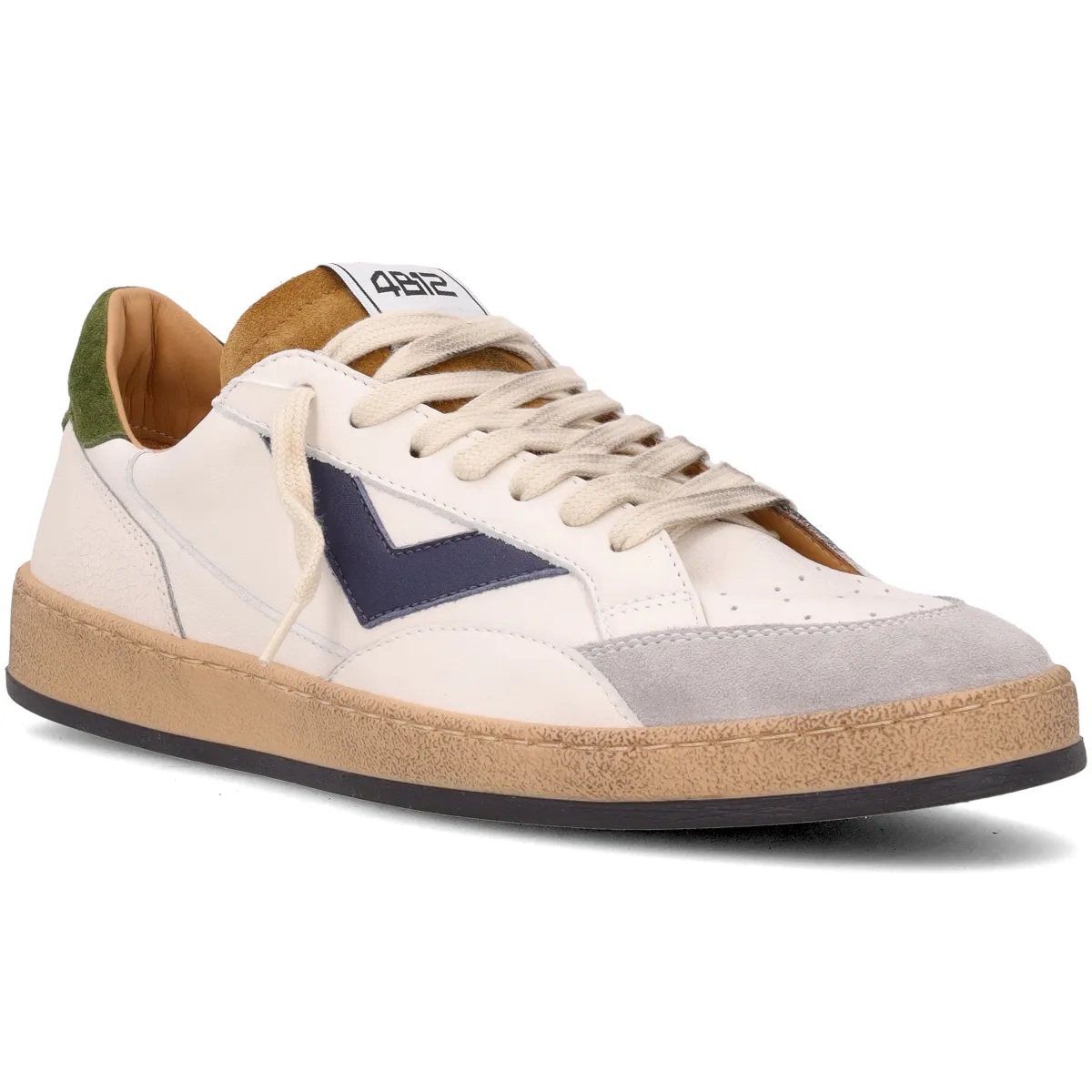 Le sneakers 4B12 Play New sono realizzate in pelle bianca di alta qualità, impreziosite da dettagli a contrasto che ne esaltano lo stile urbano. La punta in suede grigia e l’inserto laterale blu creano un effetto dinamico, mentre il tallone in suede verde e la linguetta in suede marrone aggiungono un tocco originale e distintivo. La suola in gomma color beige, resistente e leggermente vintage, garantisce comfort e durata. Un modello dal carattere contemporaneo e versatile, perfetto per completare look casual e streetwear.