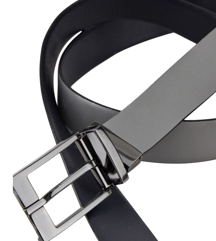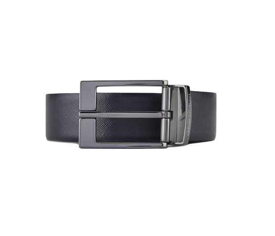 Cintura realizzata in pelle lavorata e dotata di fibbia rettangolare con logo in rilievo tono su tono.