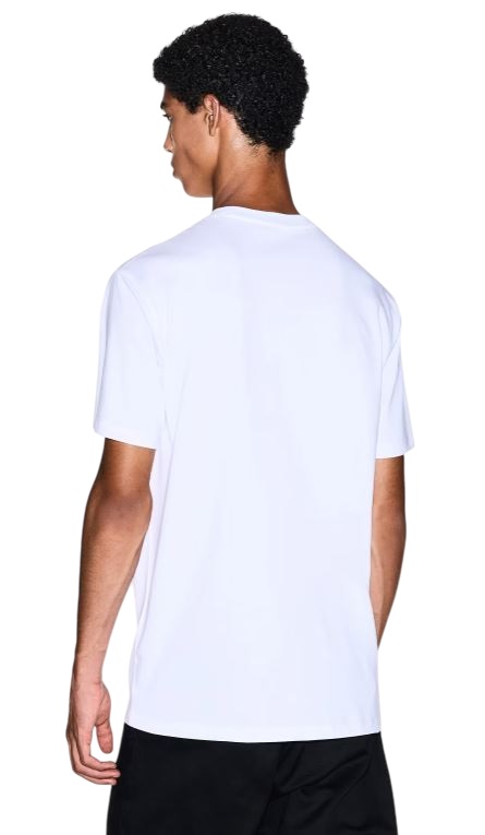 T-shirt realizzata in morbido jersey di cotone, un vero essential per chi ama lo stile minimal ma con un tocco distintivo. Questo capo si fa notare per l'elegante lettering "Armani Exchange Milano / New York" stampato tono su tono sul petto, un dettaglio sofisticato che non urla ma si fa apprezzare. Con il suo classico girocollo e le maniche corte, offre comfort e una versatilità incredibile per i tuoi look quotidiani.