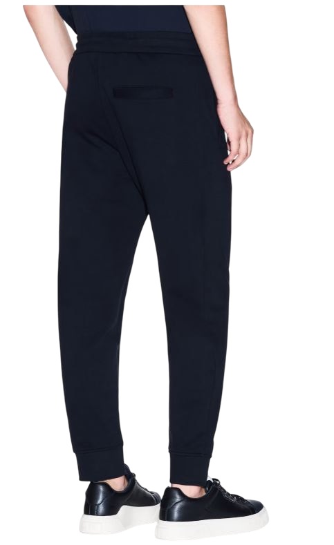 Pantaloni jogger realizzati in morbido cotone, la scelta ideale per unire comfort assoluto e uno stile athleisure di tendenza. Questi pantaloni si distinguono per il loro design pulito e funzionale, con vita elasticizzata regolabile tramite coulisse, pratiche tasche laterali e fondo con elastico alla caviglia. Il discreto lettering "Armani Exchange Milano / New York" stampato tono su tono sulla gamba aggiunge un tocco di raffinatezza.