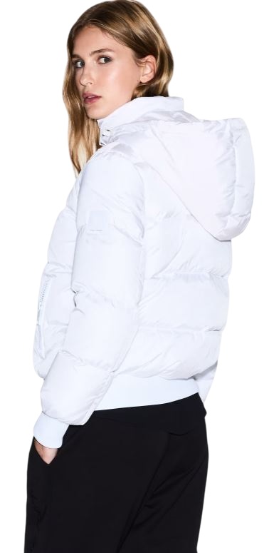 Giacca imbottita in nylon a tenuta di piuma, progettata per garantire il massimo comfort e protezione termica nei giorni più freddi. Il design è pulito e contemporaneo, con cappuccio avvolgente che offre una copertura extra e dettagli funzionali pensati per la vita urbana. Polsini e orlo a coste garantiscono una vestibilità aderente che trattiene il calore, mentre le tasche con cerniera mantengono al sicuro gli oggetti essenziali. La sua silhouette versatile la rende un alleato indispensabile per affrontare l'inverno con uno stile giovane e dinamico, facile da integrare in qualsiasi guardaroba alla moda. Imbottitura: 80% piuma bianca d'anatra, 20% piume bianche d'anatra; tessuto in nylon a tenuta di piuma.