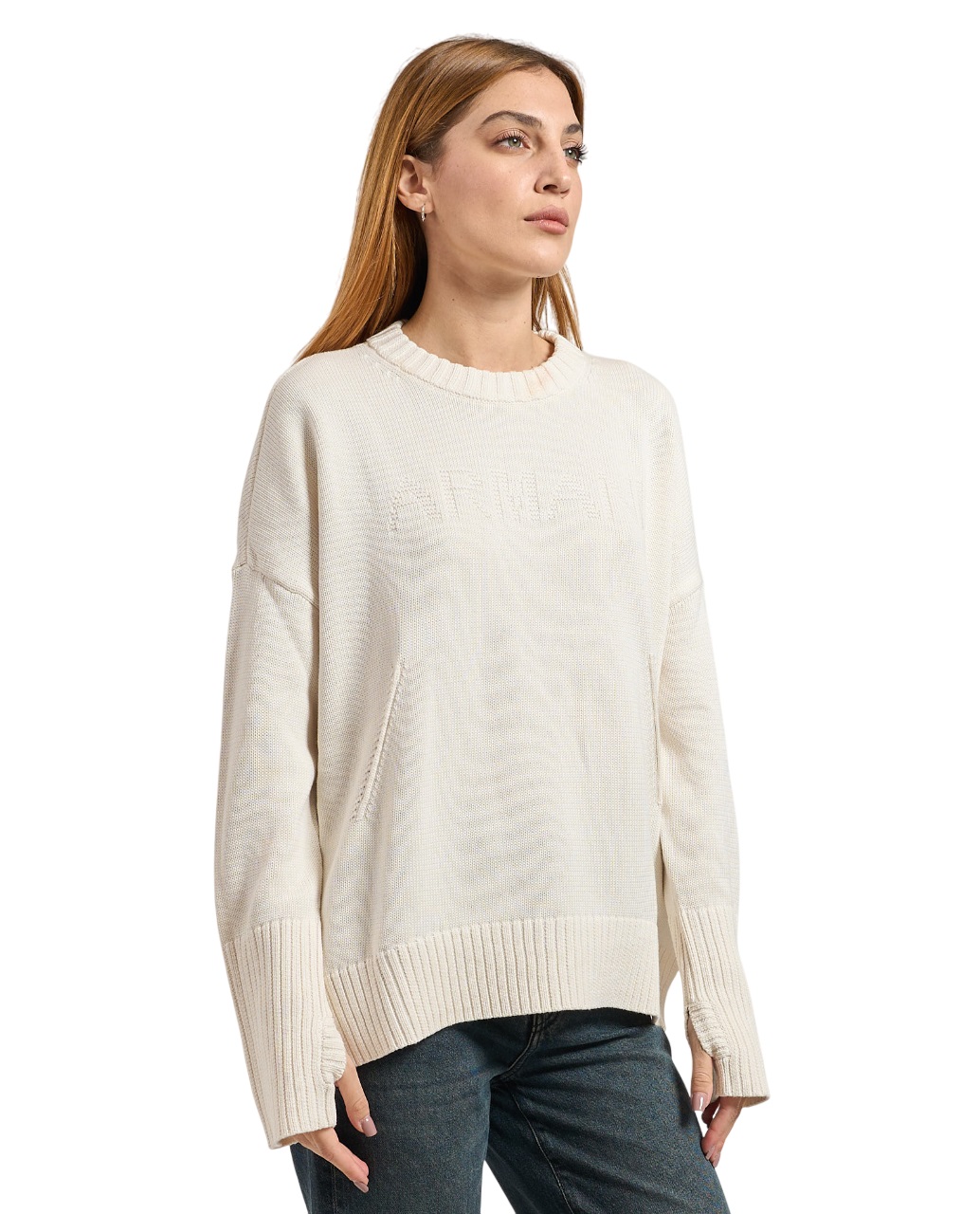 Maglione Armani Exchange dallo stile casual e sofisticato, perfetto per un look quotidiano rilassato ma ricercato. Realizzato in morbido cotone lavorato, presenta una vestibilità oversize con spalle scese per un comfort ideale.