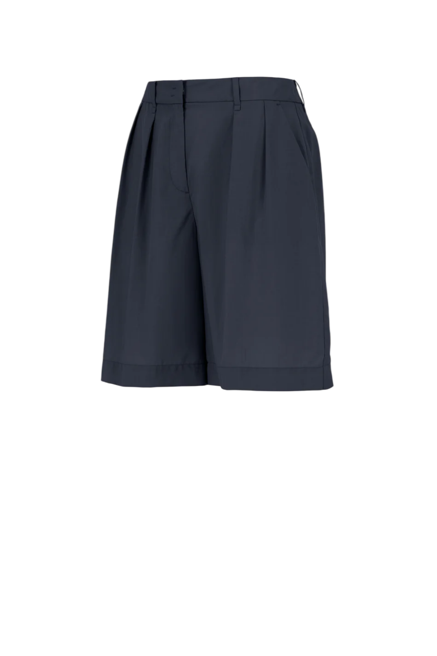 Bermuda in lyocell fluido con pieghe frontali, ideale per un look casual. La vestibilità ampia assicura comfort nelle giornate estive, mentre la chiusura con zip e gancio garantisce praticità per l’uso quotidiano.