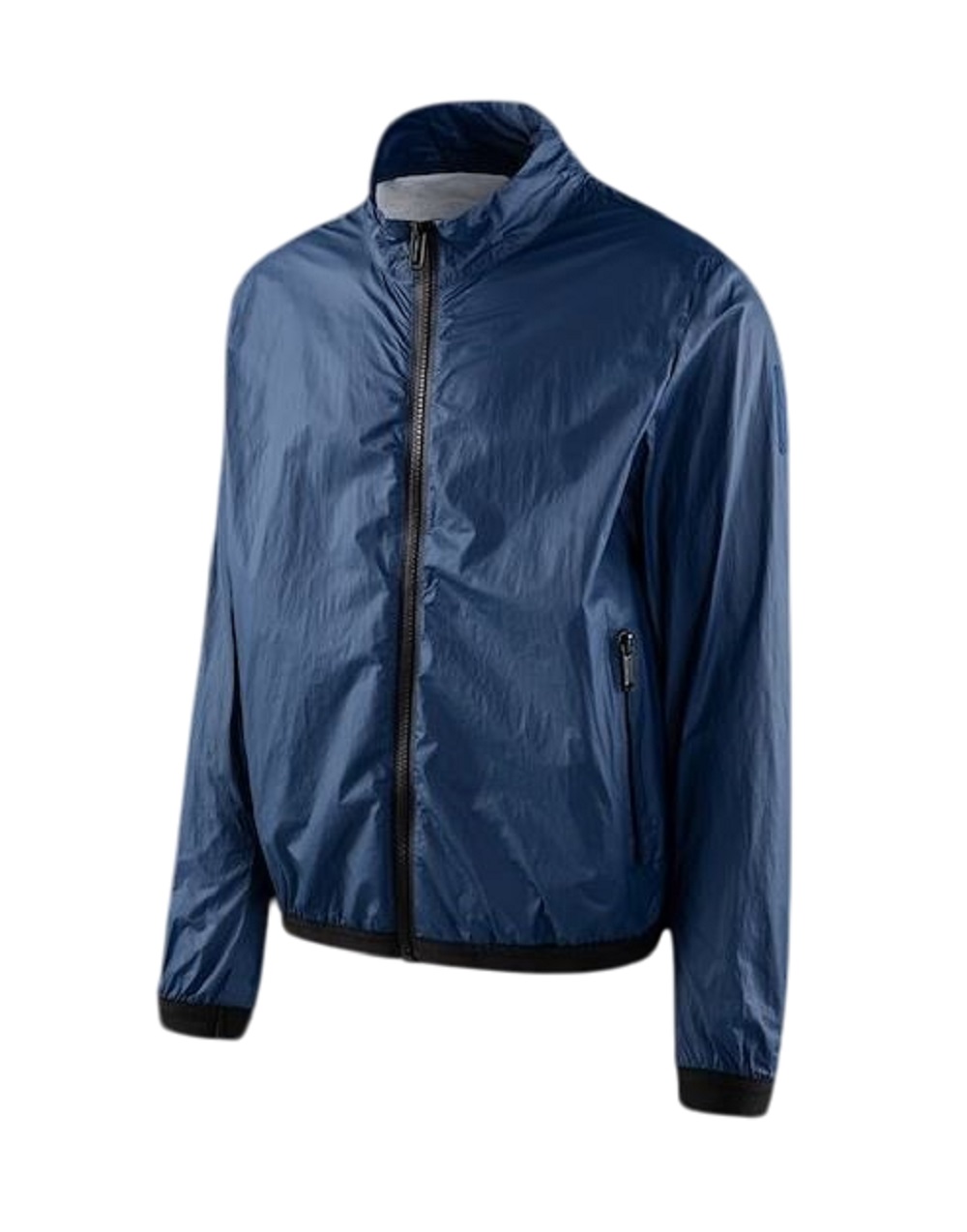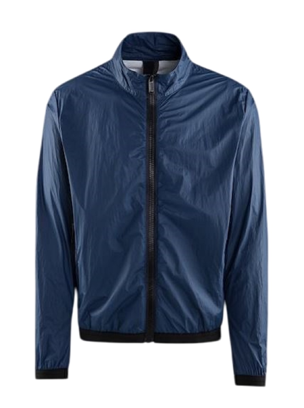 Bomber sfoderato, lavato in capo. Realizzato in tessuto innovativo e performante dalla mano carta, extra leggero, resistente all'acqua e windstopper. Regular fit.