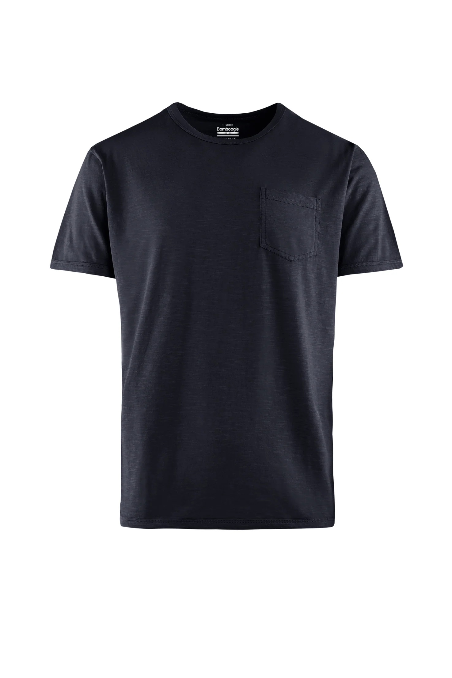 T-shirt girocollo a manica corta in cotone fiammato leggero, con taschino applicato sul petto. Ideale per completare i look estivi.