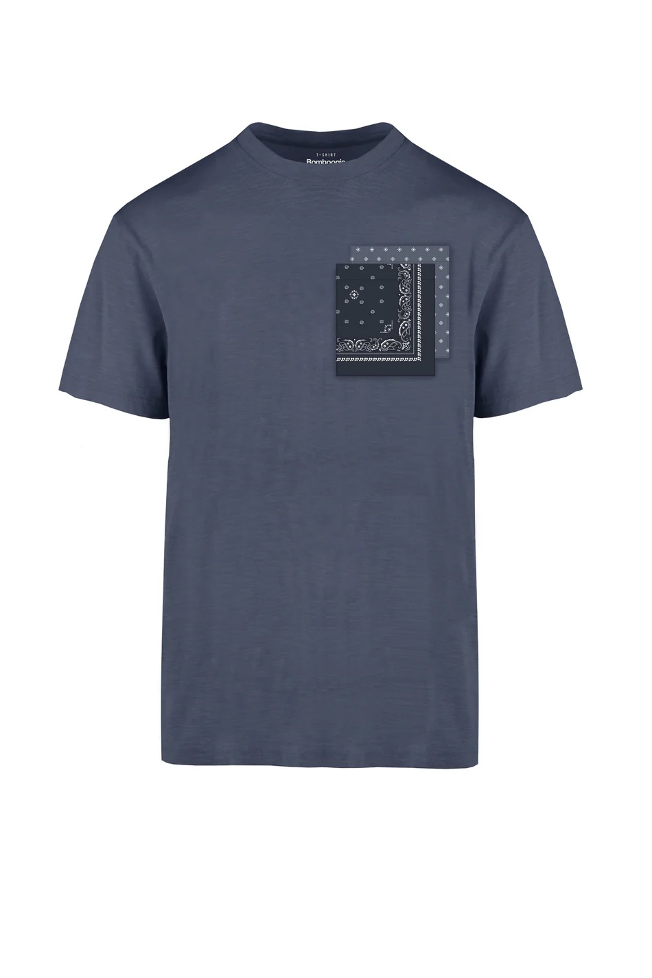 T-shirt girocollo e maniche corte con doppio taschino applicato in mussola leggera, stampa bandana. Vestibilità regular. Realizzata in cotone, ideale per un look casual nelle giornate estive.