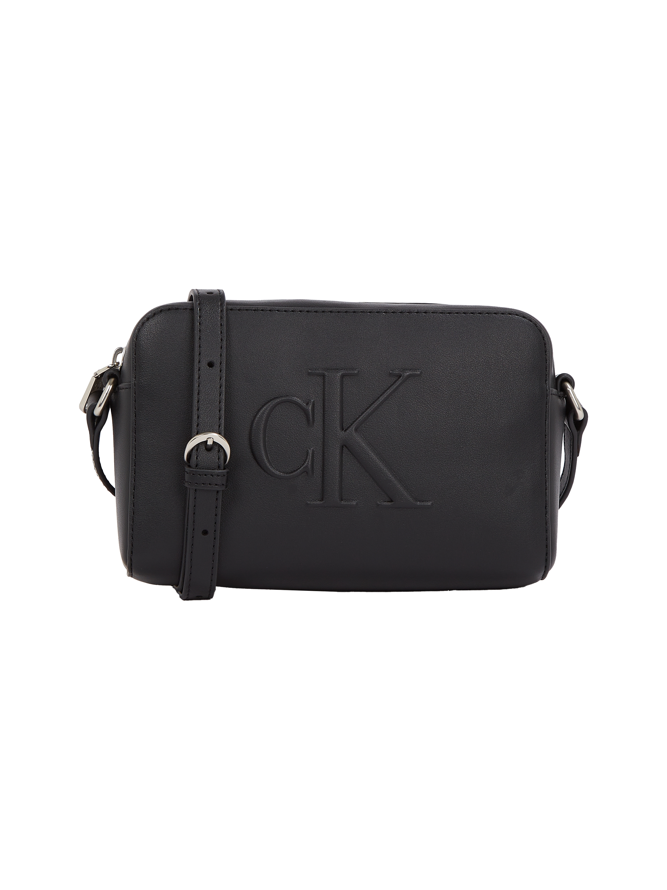 Questa borsa a tracolla per fotocamera presenta un'estetica pulita ed elegante, rifinita con un monogramma CK tono su tono in rilievo sul davanti. Con un'apposita tasca interna per le carte, per un facile accesso in movimento.