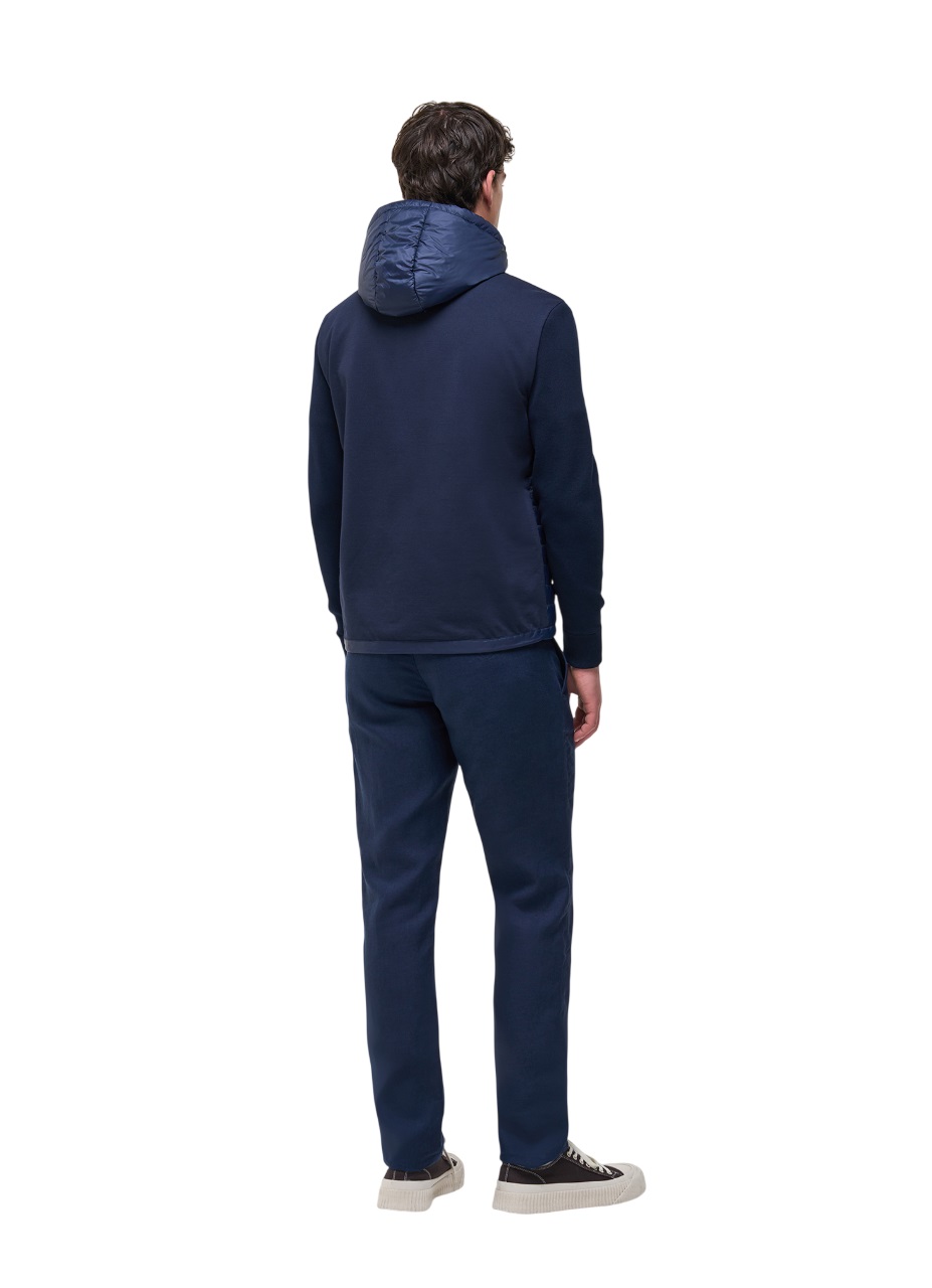 Un perfetto equilibrio per le giornate primaverili, questa giacca da uomo unisce l’imbottitura leggera in ovatta alla morbidezza delle maniche in maglia e del retro in felpa, offrendo il giusto mix di protezione e comfort. Il cappuccio, insieme alla coulisse regolabile sul fondo, completa il design, esaltando l’anima sportiva e il carattere distintivo del capo.