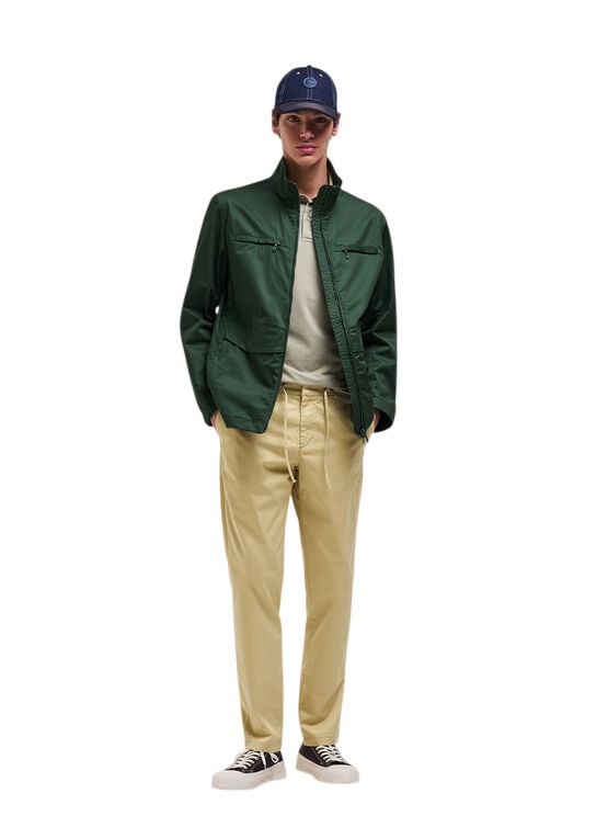 Perfetta dal lavoro al tempo libero, questa giacca da uomo è realizzata in morbido tessuto di cotone, che la rende particolarmente confortevole e piacevole da indossare. Le tasche laterali applicate e quelle con zip sul petto richiamano il design classico del field jacket. La coulisse sul fondo permette di regolarne l'ampiezza, mentre i polsini con alamari completano l'estetica distintiva del capo.