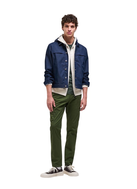 Questa giacca da uomo in denim è un vero e proprio must have per tutti i giorni. Il cappuccio in nylon staccabile aggiunge un tocco pratico e versatile, rendendola perfetta in ogni occasione. Il colletto a camicia classico e la chiusura centrale con bottoni in metallo completano il design, esaltando l'anima autentica e senza tempo del denim.
