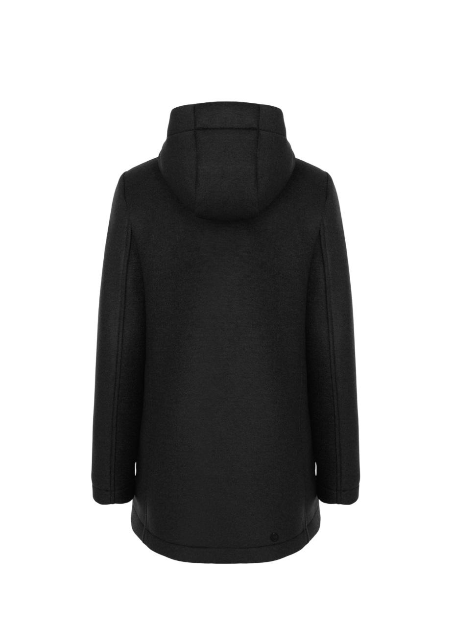Dinamico e versatile, questo cappotto in panno di lana abbraccia la silhouette con una linea sciancrata che valorizza la figura. Il cappuccio con coulisse aggiunge comfort nelle giornate fredde, mentre la chiusura con bottoni nascosti e il logo tono su tono ne definiscono l’eleganza essenziale. Completato da pratiche tasche laterali, è perfetto per affrontare l’inverno con stile. Da indossare anche con il gilet della collezione, Mod. 2083 2YO, grazie all’apposito nastro, per aggiungere uno strato extra di calore nei giorni più freddi.