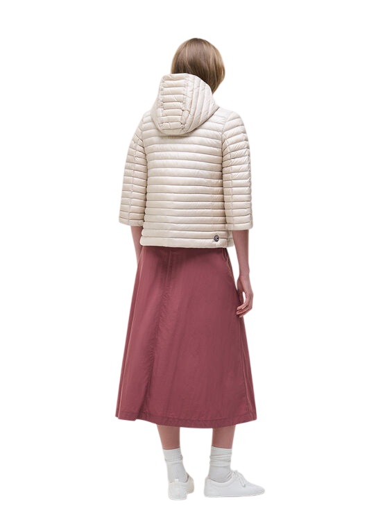Caratterizzata dalla silhouette a trapezio e maniche a 3/4, questa cappa da donna 100 grammi unisce leggerezza e femminilità. Il cappuccio e le tasche laterali aggiungono praticità, mentre l’iconico logo sulla manica sinistra completa il design con un tocco distintivo e versatile.