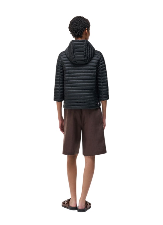 Caratterizzata dalla silhouette a trapezio e maniche a 3/4, questa cappa da donna 100 grammi unisce leggerezza e femminilità. Il cappuccio e le tasche laterali aggiungono praticità, mentre l’iconico logo sulla manica sinistra completa il design con un tocco distintivo e versatile.