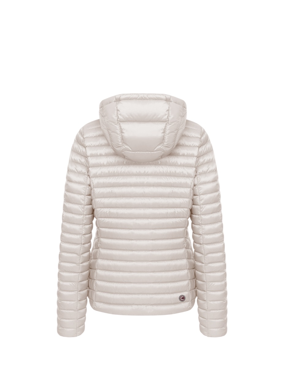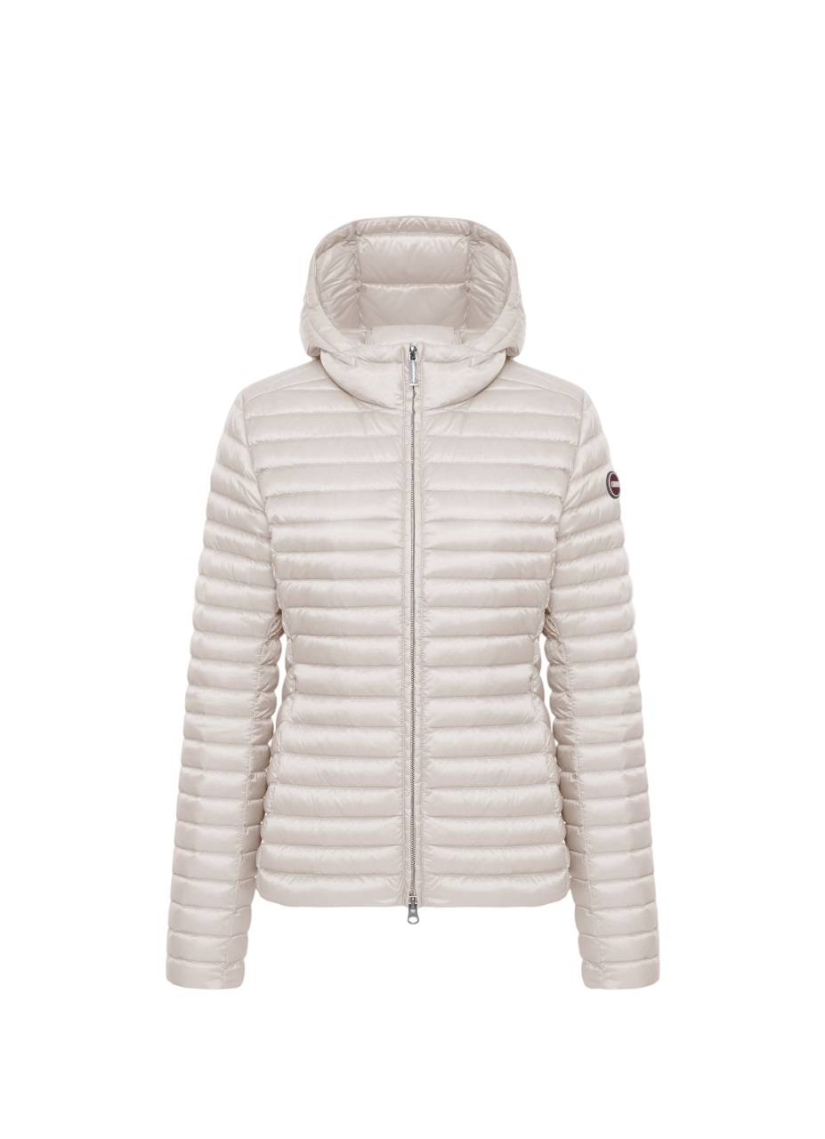 Simbolo di comfort quotidiano, questo piumino é ideale per i mesi più miti. La silhouette classica con cappuccio e il punto vita sciancrato garantiscono una vestibilità elegante e femminile, mentre le tasche laterali completano il design, unendo classico e funzionalità .