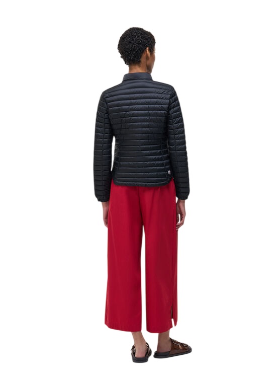 Un tocco ricercato e distintivo caratterizza questo piumino da donna 100 grammi, grazie ai trapunti diagonali e al fondo svasato, che donano un effetto elegante e dinamico. L’imbottitura in morbida piuma naturale garantisce il giusto equilibrio tra leggerezza e calore, mentre il fit sciancrato esalta la silhouette, fondendo performance e stile femminile.