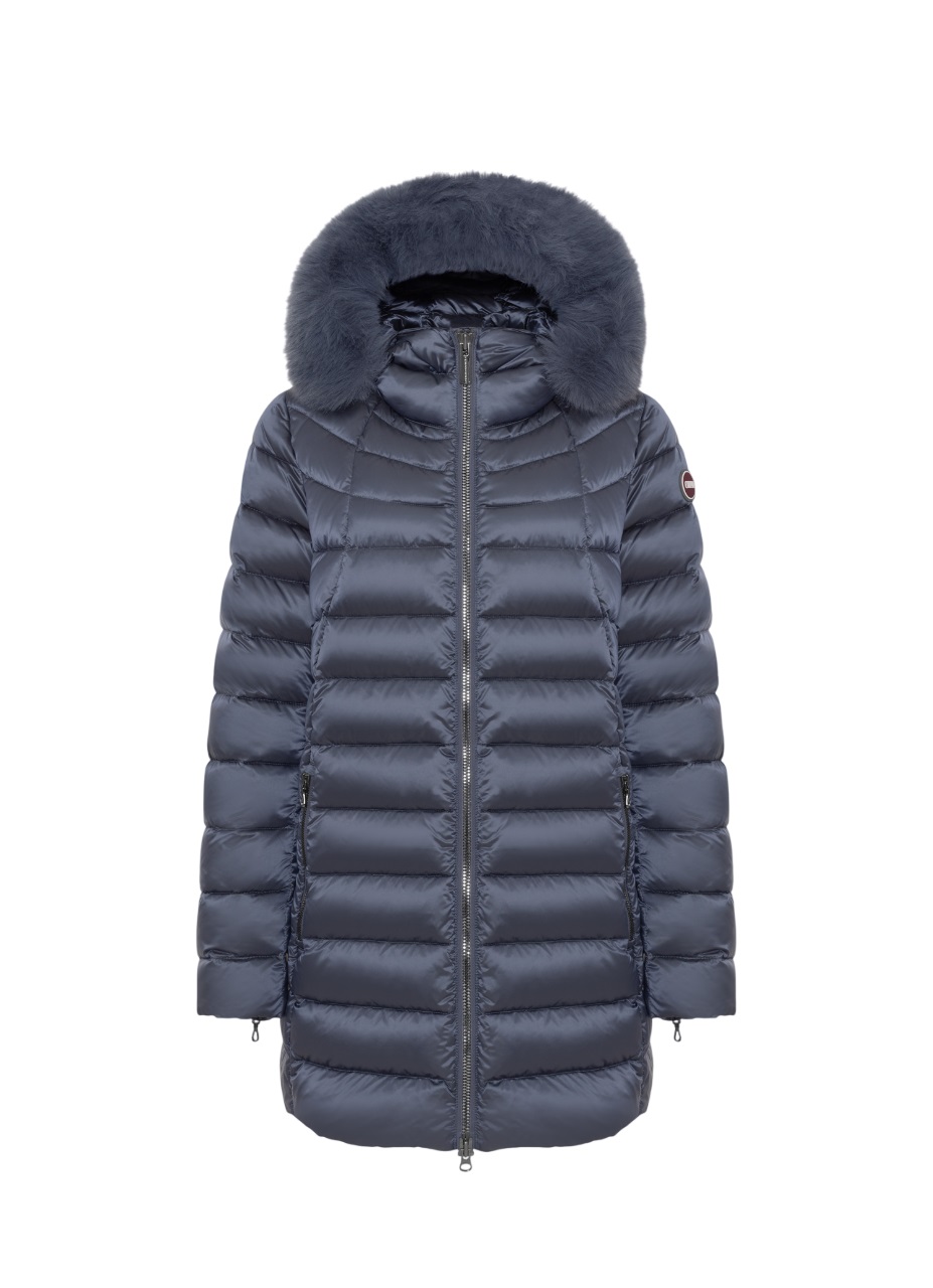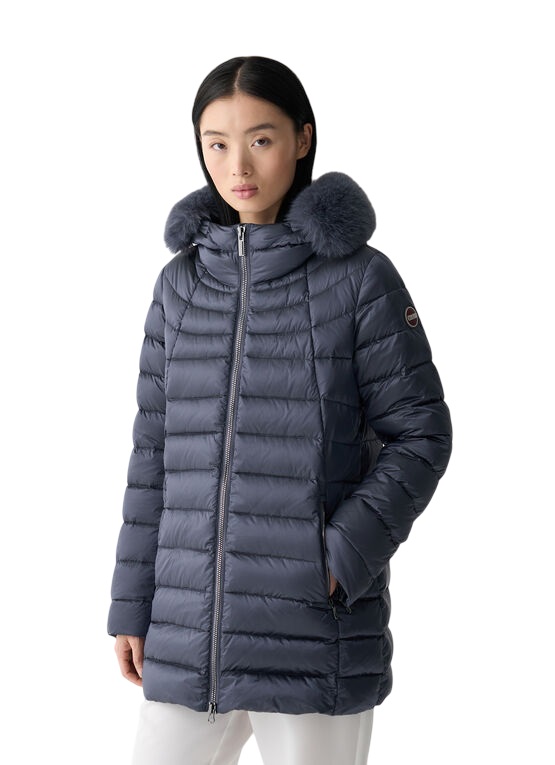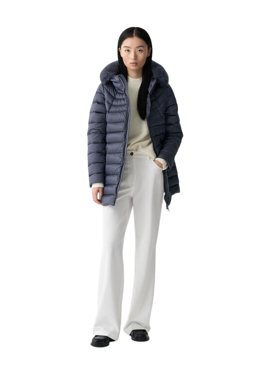 Le linee verticali slanciano la figura, mentre il cappuccio con pelliccia sintetica aggiunge un tocco romantico. Questa giacca imbottita è l'alleato perfetto per chi cerca stile e protezione, con le tasche laterali che completano il design.