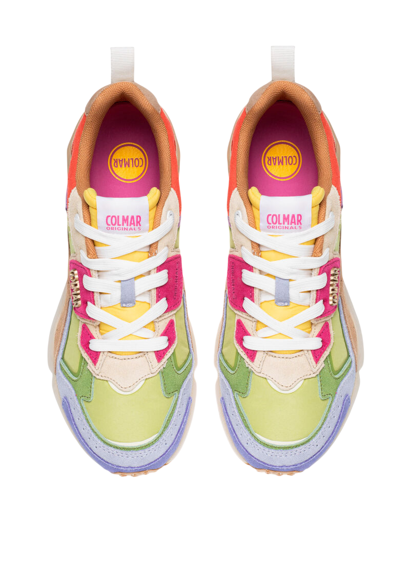 Un’esplosione di colore e freschezza in questa scarpa da donna. La tomaia in nylon liscio si anima con dettagli in suede multicolor, creando contrasti vivaci e un modello dalla personalità inconfondibile. Il design leggero, morbido e traspirante assicura comfort ad ogni passo, perfetto per chi ama distinguersi con stile e sicurezza.