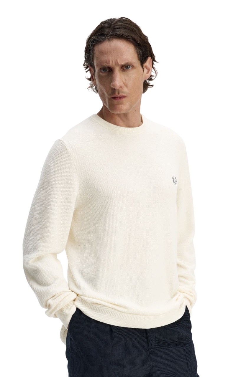 Realizzato nello stesso piqué di cotone ad alte prestazioni come tutte le nostre polo, questo maglione girocollo è un capo 100% Fred Perry. Di ispirazione sportiva e in perfetto stile streetwear, presenta una morbida finitura in cotone pettinato, girocollo relaxed e dettaglio a coste su polsini e orlo.