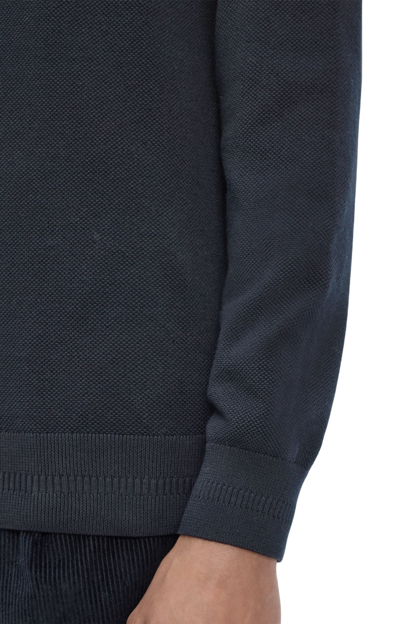 Un maglione girocollo in puro cotone a punto piqué.