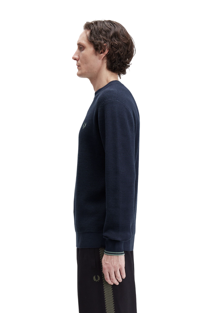 Maglione in cotone pettinato con texture a lavorazione goffrata.