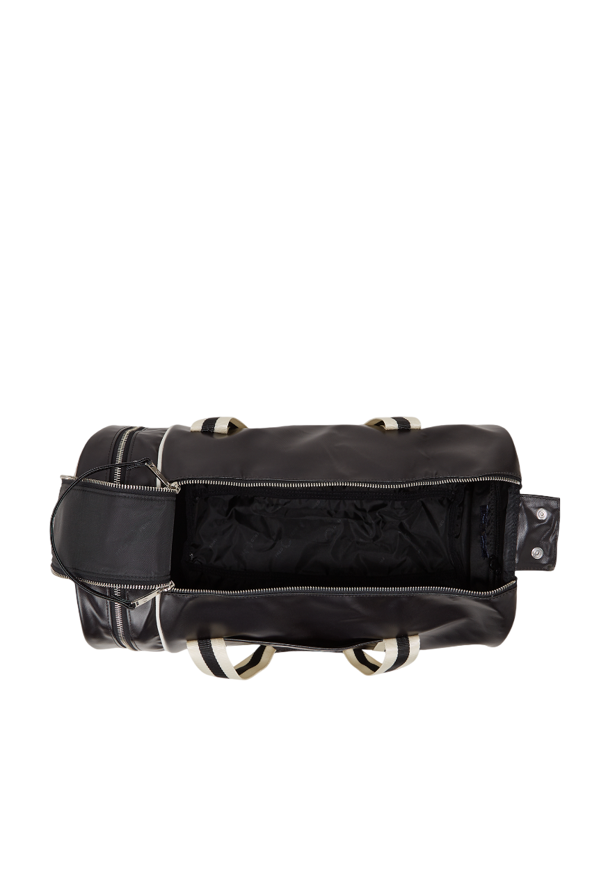 Tessuto in poliestere riciclato / Dettagli in metallo argentato / Chiusura con doppia zip con tiralampo ad anello e scomparto laterale con zip / Tracolla regolabile con motivo a righe / Logo ad arco sui pannelli laterali e logo con corona d'alloro sul davanti