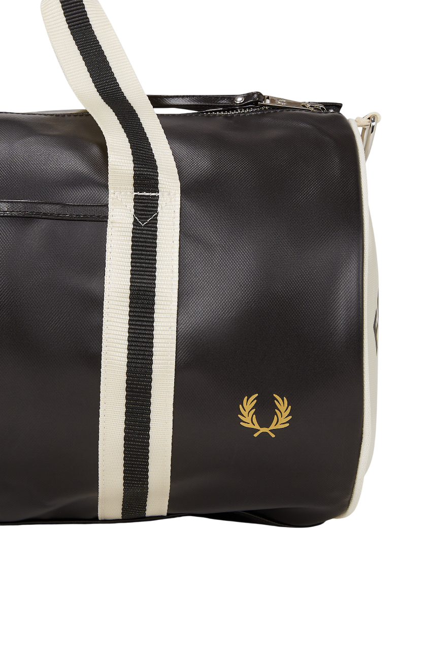 Ricca di dettagli funzionali ispirati al mondo sportivo tra cui apertura superiore con zip doppia e pratico tiralampo ad anello, tasca laterale arrotondata, tracolla regolabile e due manici in fettuccia. Non solo pratica, questa borsa presenta tutti i dettagli Fred Perry più iconici come la nostra riga, la profilatura a contrasto, il logo ad arco stampato su entrambe le estremità e la corona d'alloro in lamina dorata in rilievo sul pannello anteriore. Un accessorio 100% Fred Perry.