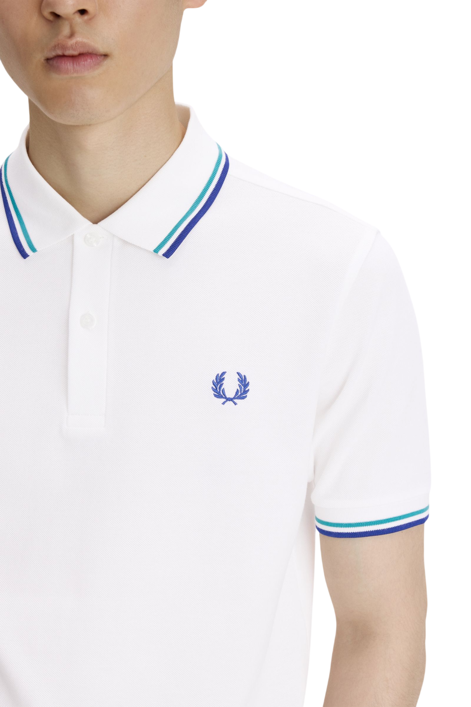 Piqué di cotone / Vestibilità regular / Pattina a due bottoni / Doppia riga su colletto e bordo manica / Corona d'alloro ricamata sul petto