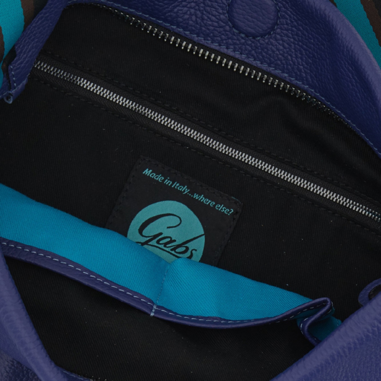 La linea "Icon Black" icona di Gabs è caratterizzata da bottone nero, zip di colore turchese e tracolla a nastro. Con la sua forma spaziosa, questa borsa è ideale per chi cerca un'opzione versatile e alla moda. • Interno Foderato • Tasca interna con chiusura a zip e due tasche porta oggetti • Realizzato in pelle di vitello opaca
