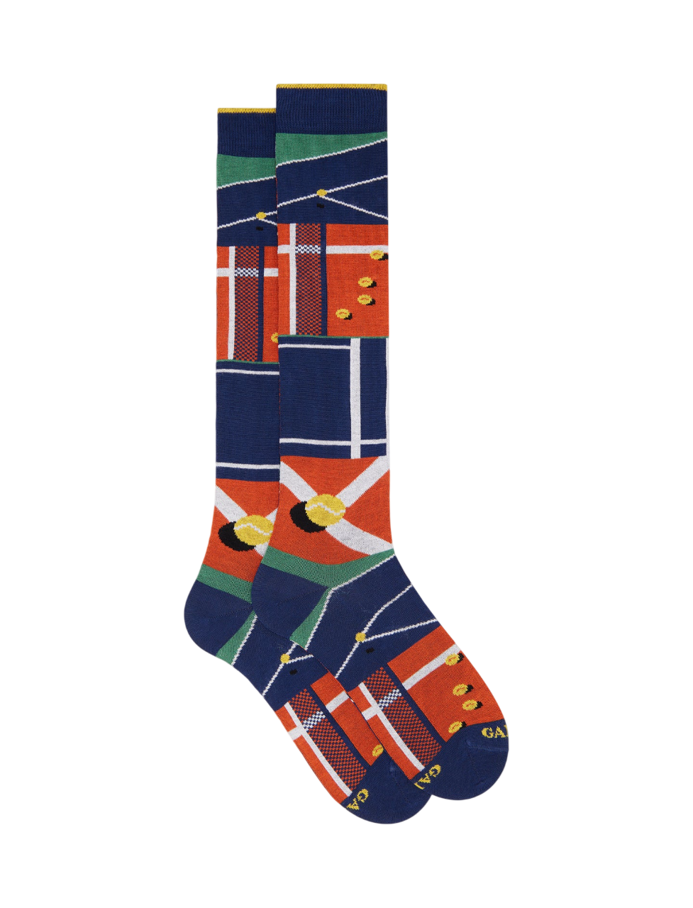 Calze lunghe da uomo in pregiato cotone, caratterizzate da un'elegante fantasia ispirata al tennis, che evoca dinamismo e stile. La raffinata tonalità blu si sposa armoniosamente con il motivo distintivo, rendendo ogni passo un'esperienza di classe. Realizzate in Italia, sinonimo di qualità ed eccellenza GALLO.