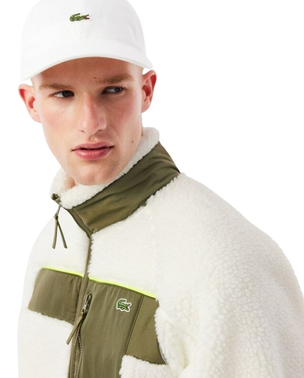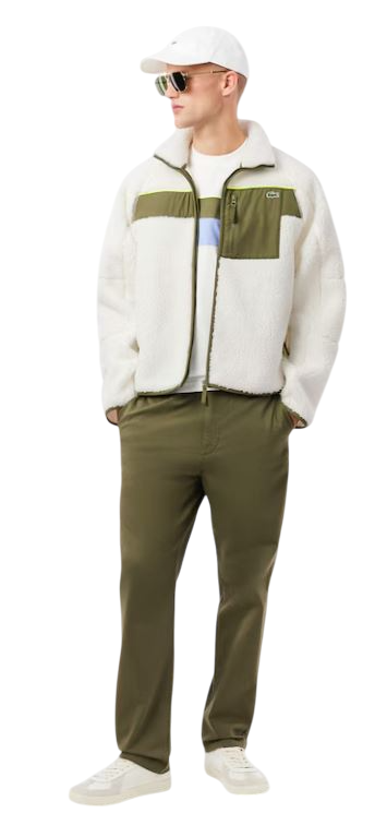 Questa giacca in pile Sherpa di Lacoste, creatori di sportswear dal 1933, è una lezione di design ricca di tocchi distintivi. Realizzata in morbido e caldo pile Sherpa con un design audace e iconico color block, oltre a dettagli eleganti e texture a contrasto. Un must have rifinito con un tradizionale coccodrillo ricamato.