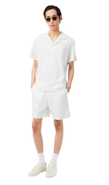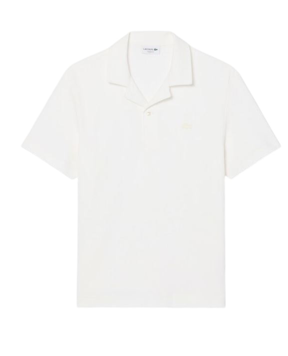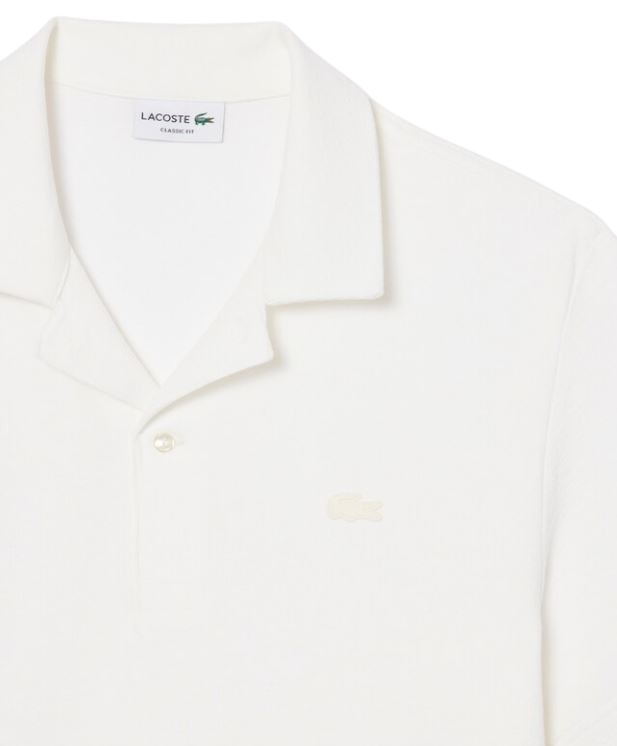 Una versione rilassata ed elegante dell'iconico design della polo Lacoste del 1933. Un design elegante in un esclusivo tessuto jersey di cotone testurizzato, con collo aperto e caratteristico coccodrillo ricamato. Un must con dettagli dalle finiture sofisticate, tra cui i bottoni in madreperla.