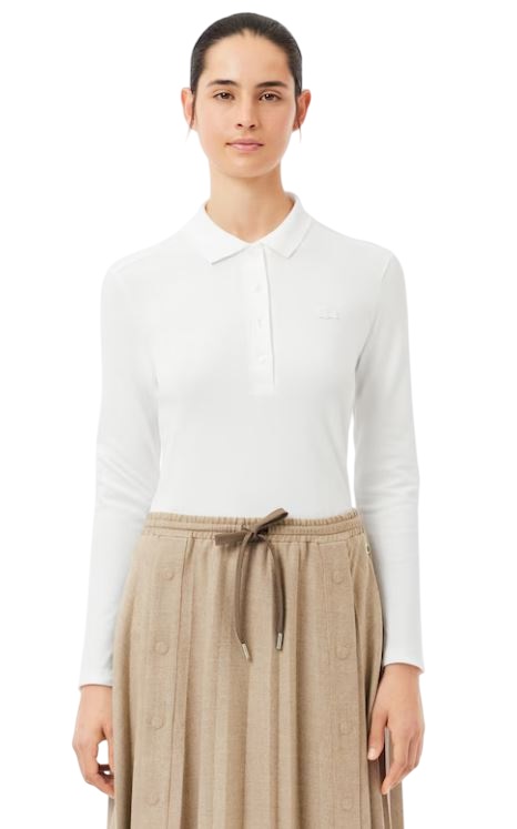 Le classiche maniche lunghe e i bottoni in vera madreperla mettono in risalto l’aspetto femminile di questa polo in cotone, perfetta per la stagione. Il taglio slim fit aggiunge fascino a questo capo senza tempo.