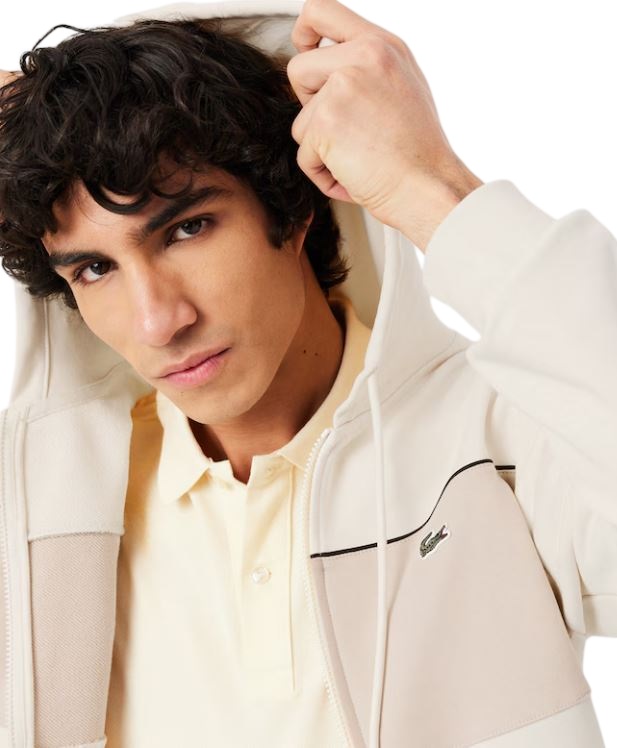 Una felpa con cappuccio e zip, ricca di dettagli distintivi ed elementi all'avanguardia di Lacoste, creatori di sportswear dal 1933. Realizzata in confortevole cotone felpato con un audace stile iconico color block, rifinito con bordi a contrasto. Il connubio perfetto tra moda e sportswear, rifinito con l'iconico coccodrillo ricamato.