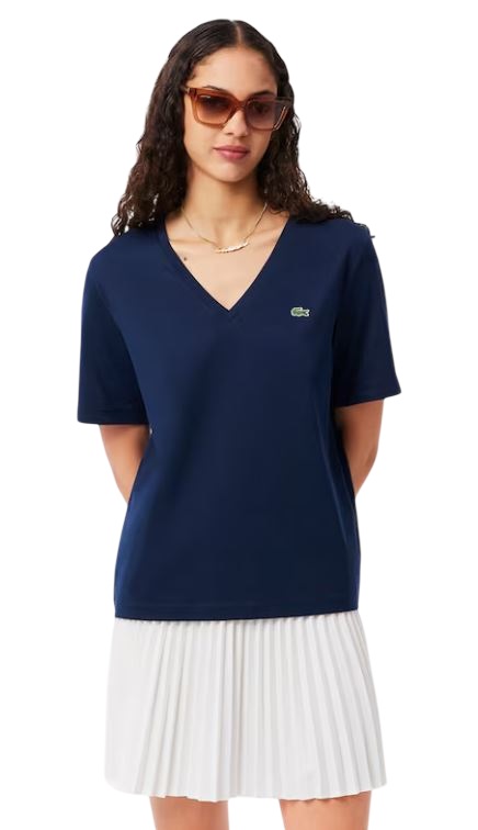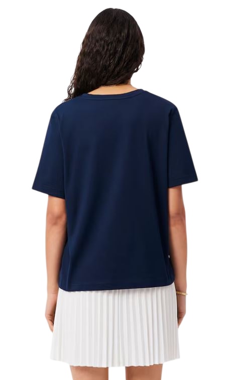 Caratterizzata da un taglio moderno e drappeggiato con spalle scese in comodo jersey di cotone, questa t-shirt con scollo a V firmata Lacoste è non a caso un classico. Il nostro caratteristico coccodrillo ricamato aggiunge il tocco finale.