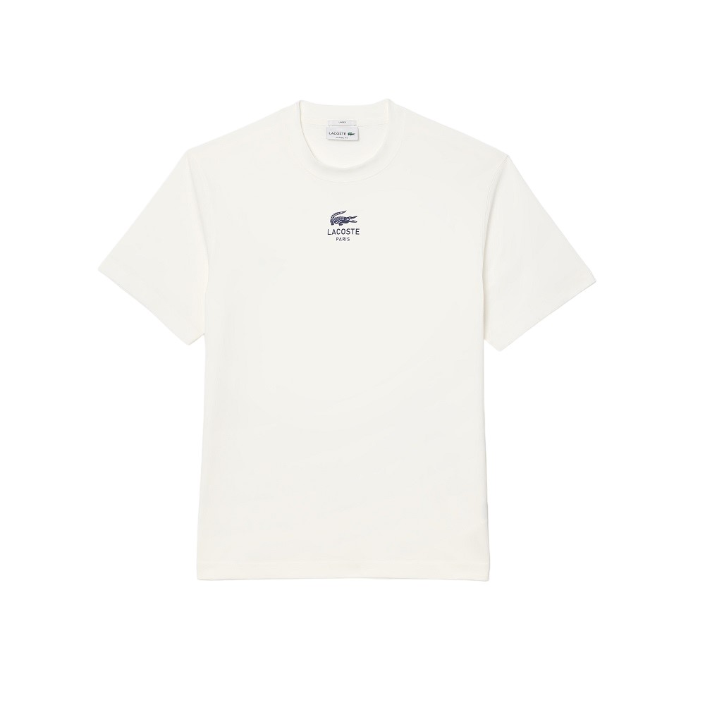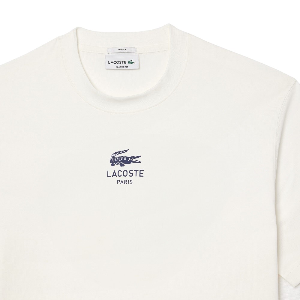 Semplice, iconica e intramontabile: questa t-shirt Lacoste color panna è un capo essenziale dal fascino raffinato. Realizzata in morbido jersey di cotone, presenta una vestibilità regolare e un look pulito, arricchito dalla stampa con il logo Lacoste Paris in tinta contrastante sul petto. Ideale da indossare da sola o sotto una giacca leggera, è perfetta per completare ogni outfit con un tocco di classe sobria.