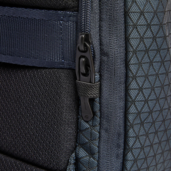Zaino da viaggio modulare in tessuto riciclato e pelle porta pc e iPad® con sistema di sicurezza antifurto, tasca portaocchiali e protezione antiurto