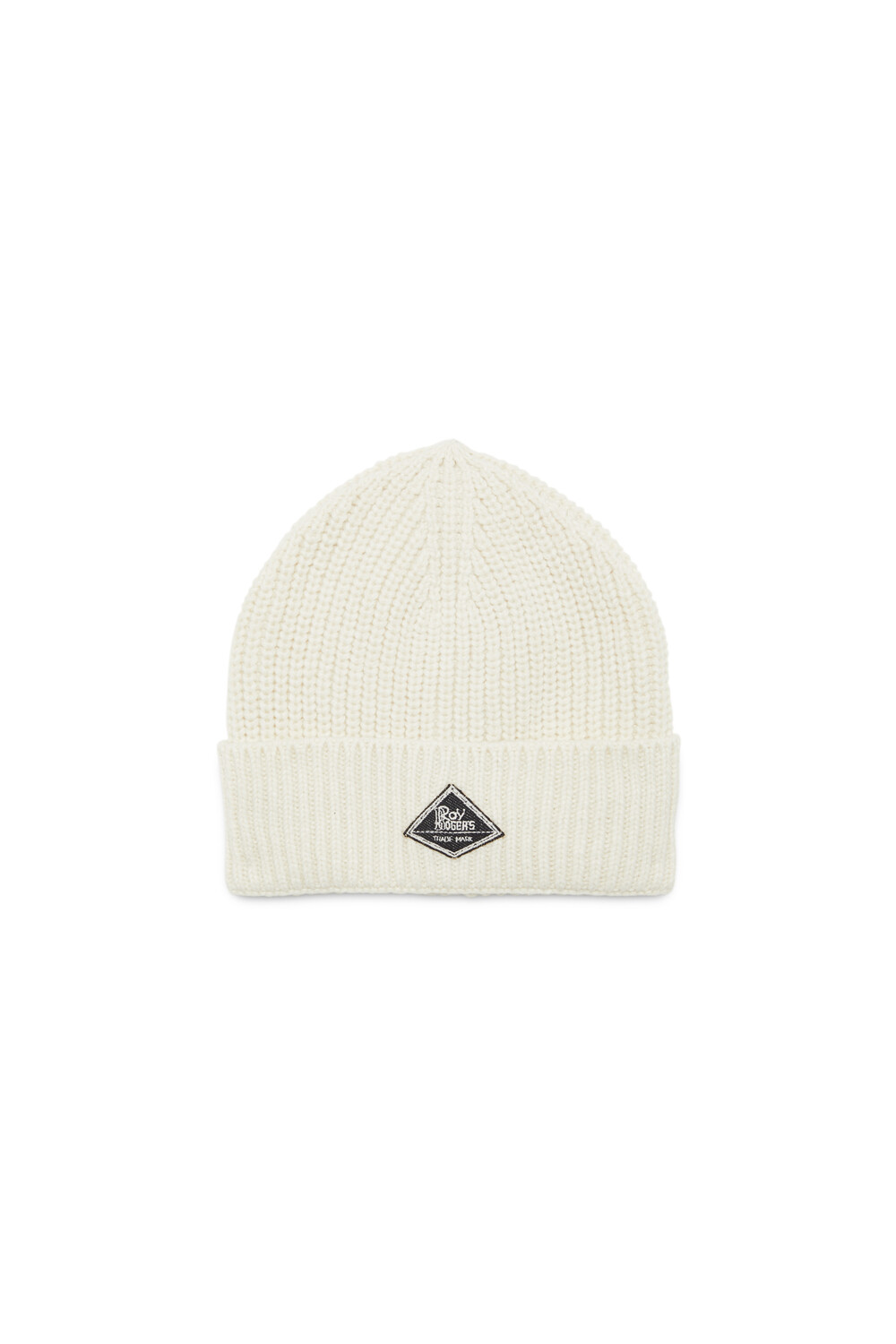 Cappello Beanie in maglia a coste tinta unita. Fondo con maxi reverse e patch Roy Roger's in denim applicata. COMPOSIZIONE: 100% ACRILICO