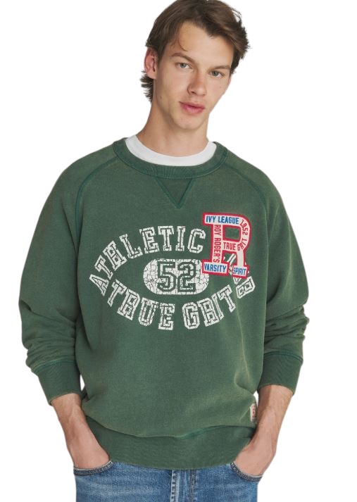 FELPA GIROCOLLO CON STAMPA ATHLETIC CLUB Felpa girocollo in cotone stone wash tinta unita.