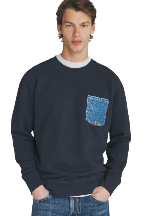 FELPA GIROCOLLO POCKET Felpa girocollo in cotone brushed tinta unita.