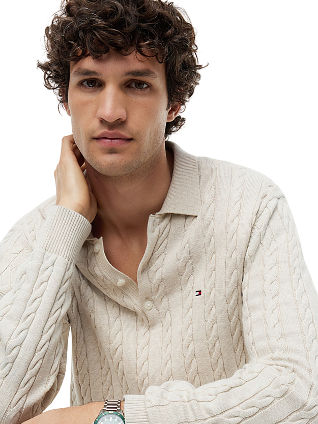 La classica polo con lavorazione in maglia intrecciata, realizzata in puro cotone pettinato, si ispira all'intramontabile stile college.