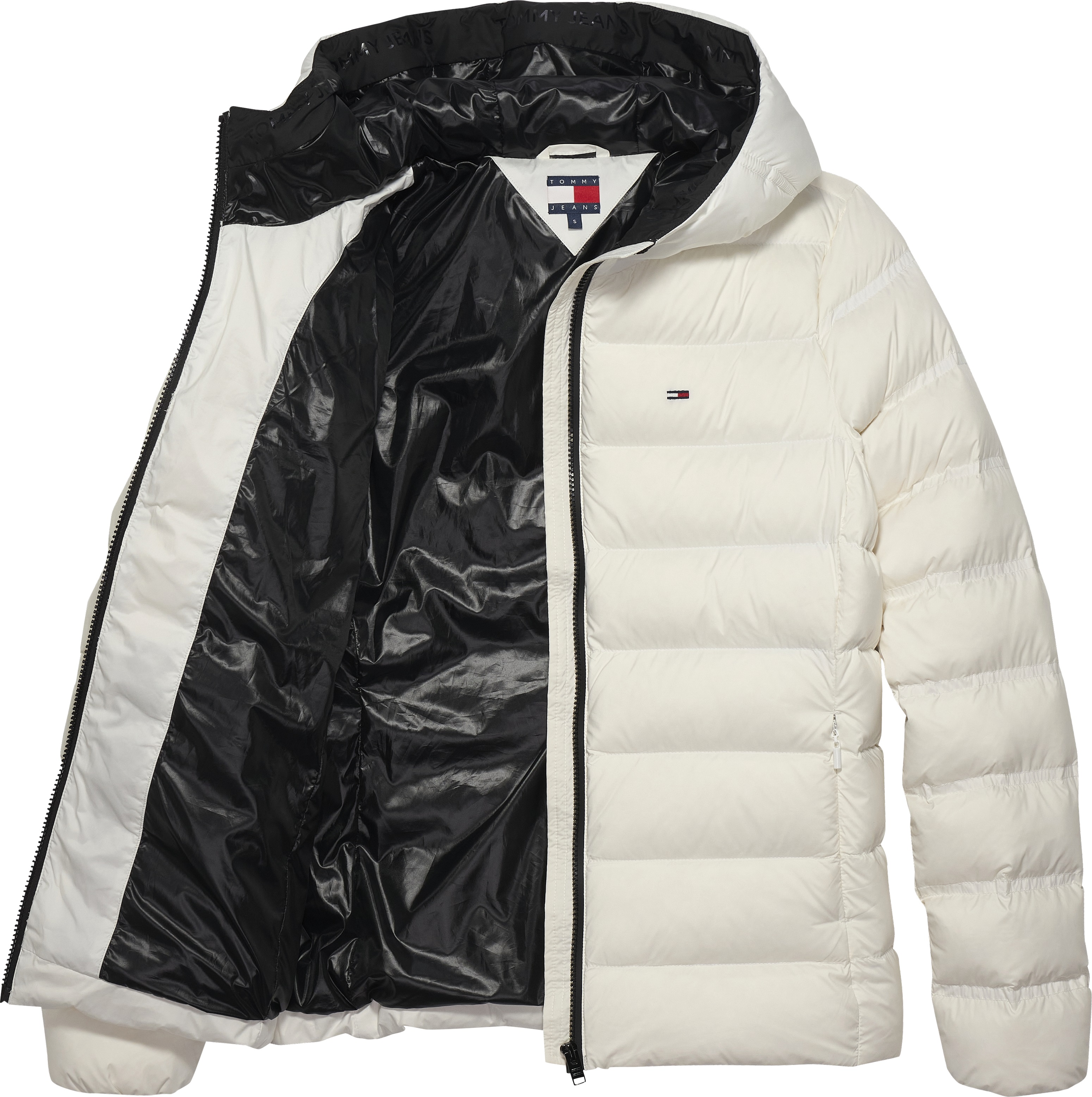 Il piumino con cappuccio, realizzato in tessuto idrorepellente e imbottito in piuma, è la scelta ideale in qualsiasi condizione climatica.