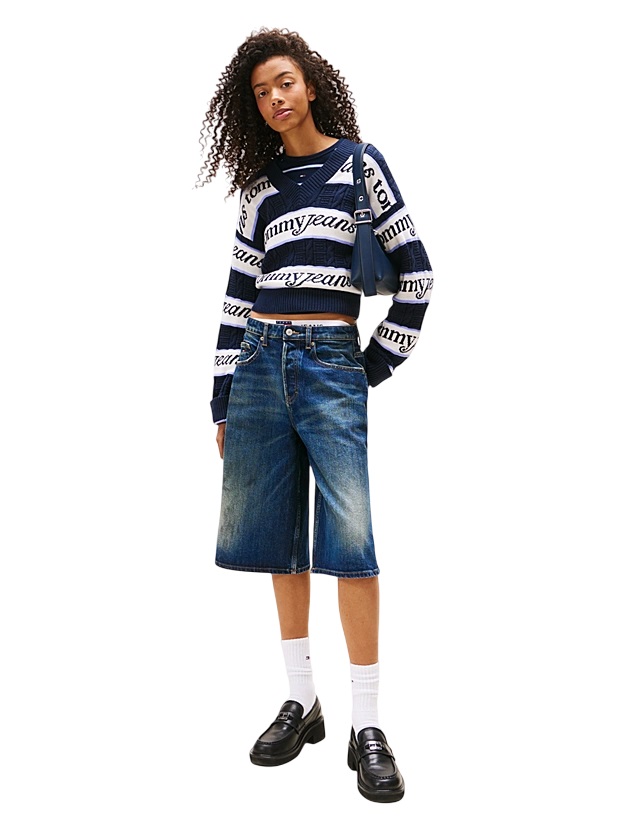 Il pullover in maglia intrecciata, caratterizzato dalla fantasia a righe all over con logo Tommy serif, è un capo indispensabile per i look casual.