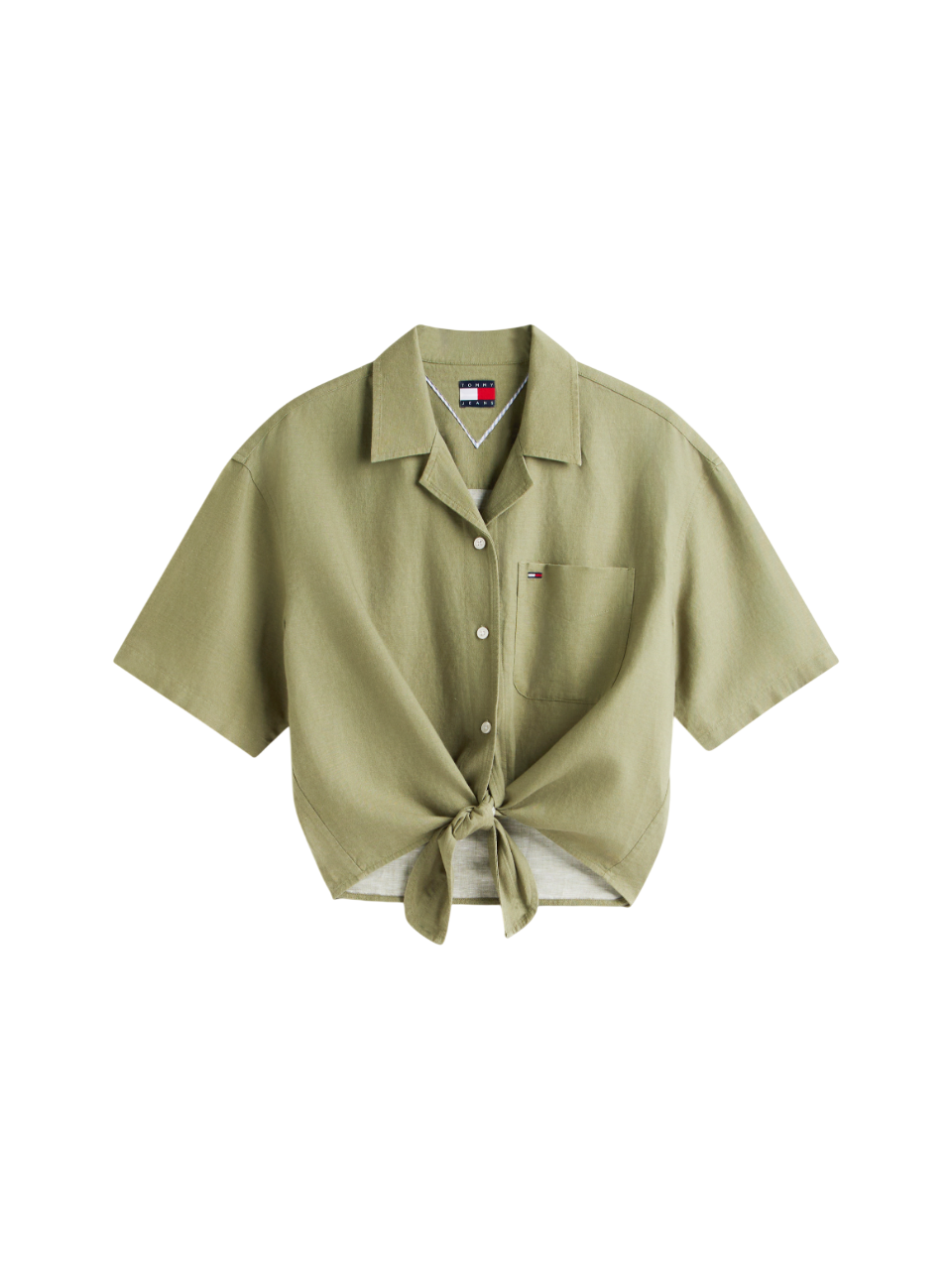 Aggiungi originalità al tuo guardaroba per la bella stagione con la raffinata camicia a maniche corte, caratterizzata dalla comoda vestibilità ampia e dal dettaglio da annodare sul fondo.