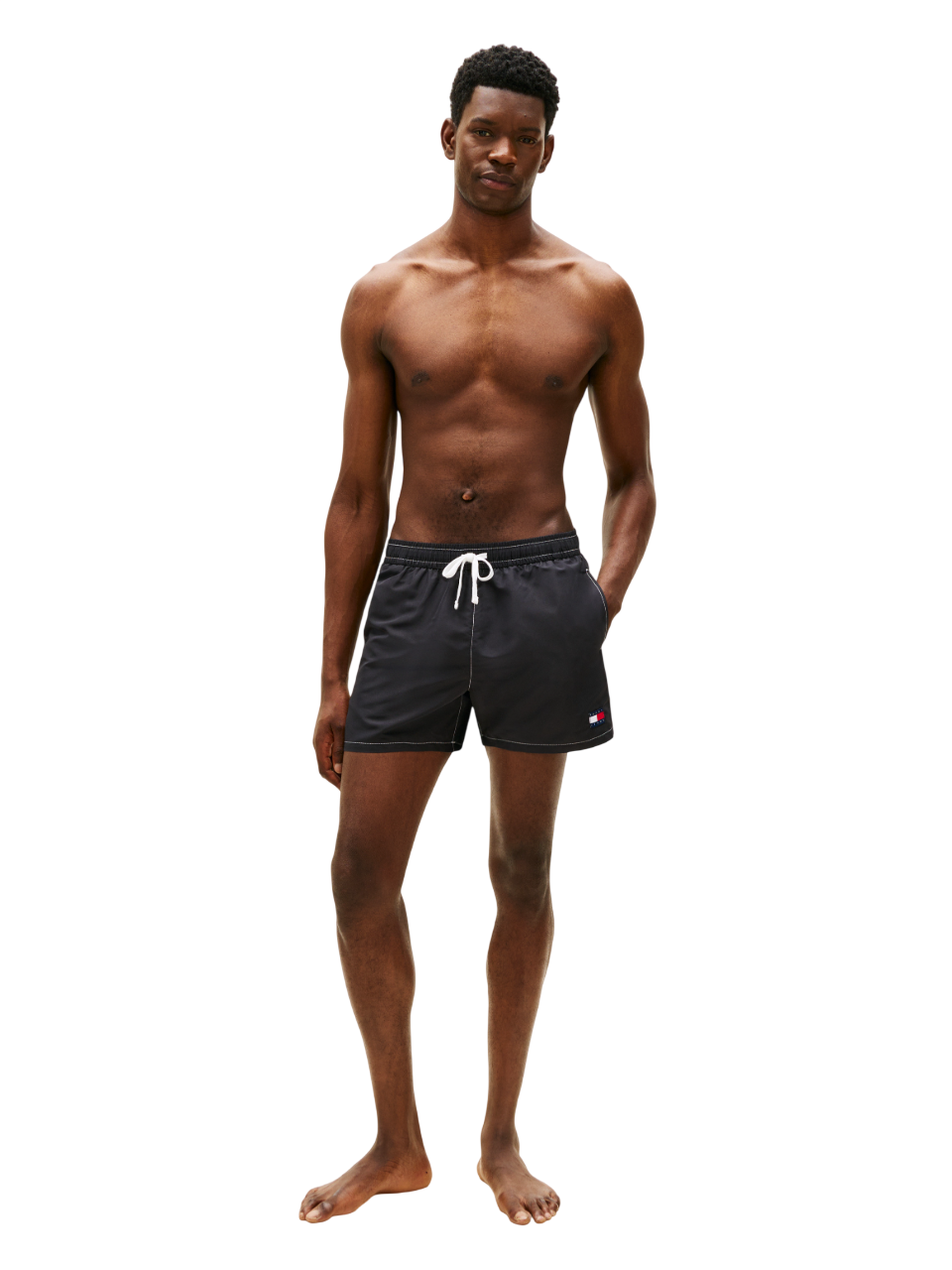 Per i tuoi look da piscina scegli il costume shorts di media lunghezza di ispirazione heritage, realizzato in morbido nylon e rifinito dal distintivo Tommy.