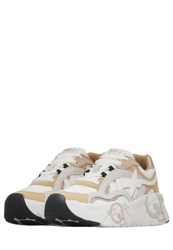 Queste sneakers, caratterizzate dal fondo platform in gomma che slancia la figura, uniscono stile e comfort per tutto il giorno. La tomaia in suede e tessuto tecnico avvolge il piede con dinamismo, mentre fodera e soletta in tessuto assicurano traspirabilità. La chiusura con lacci completa una calzatura pratica e raffinata, ideale per chi cerca leggerezza e originalità in ogni passo.