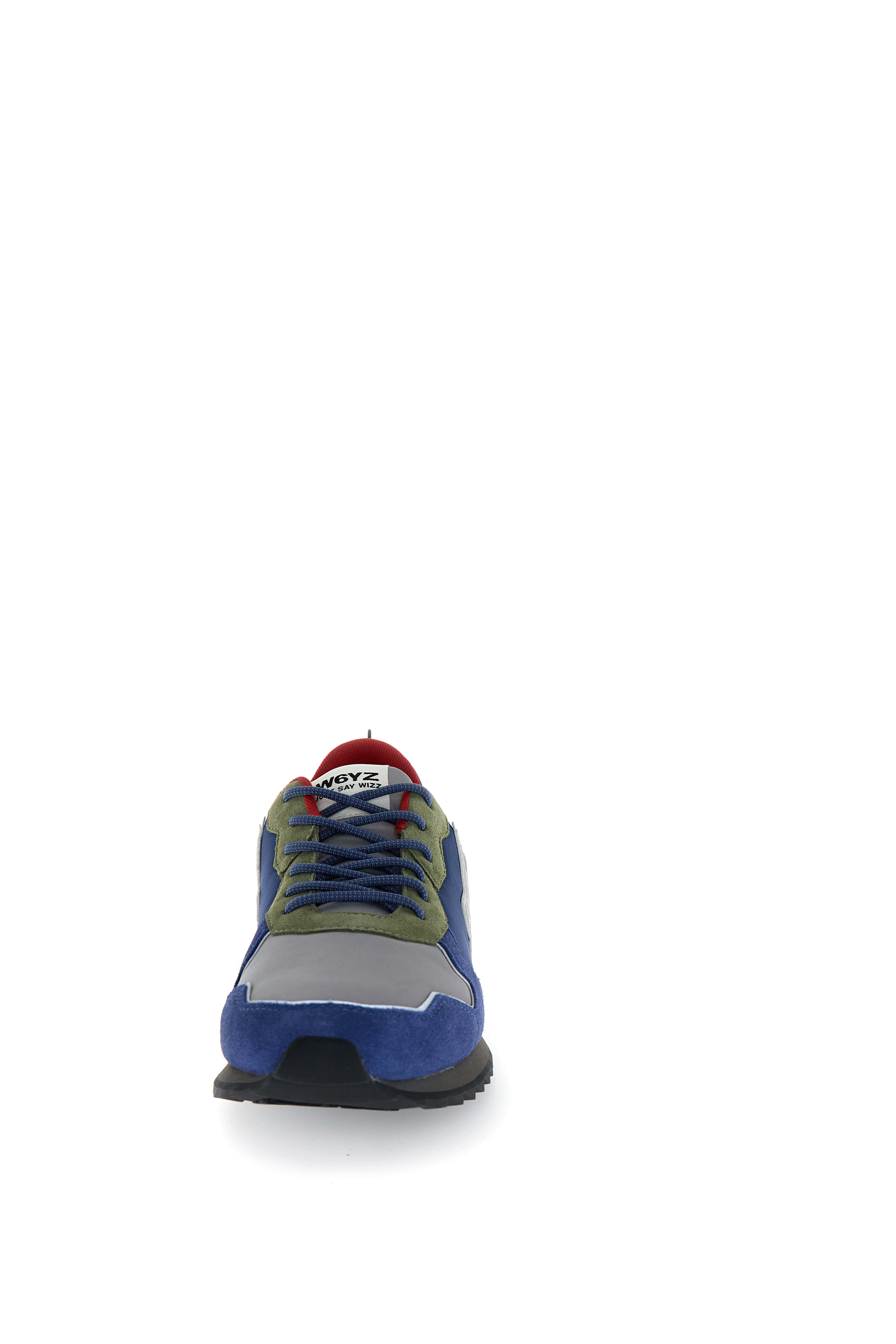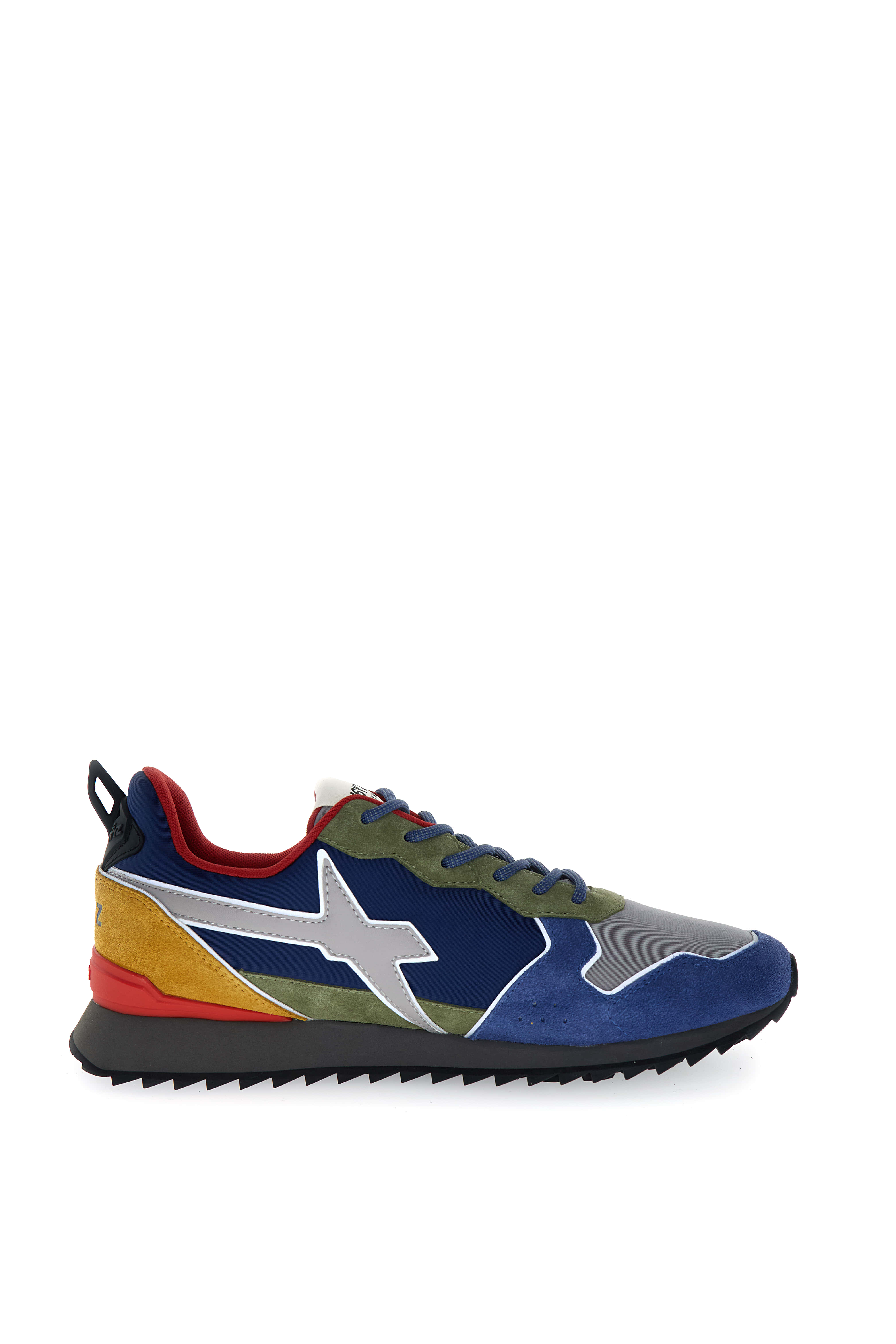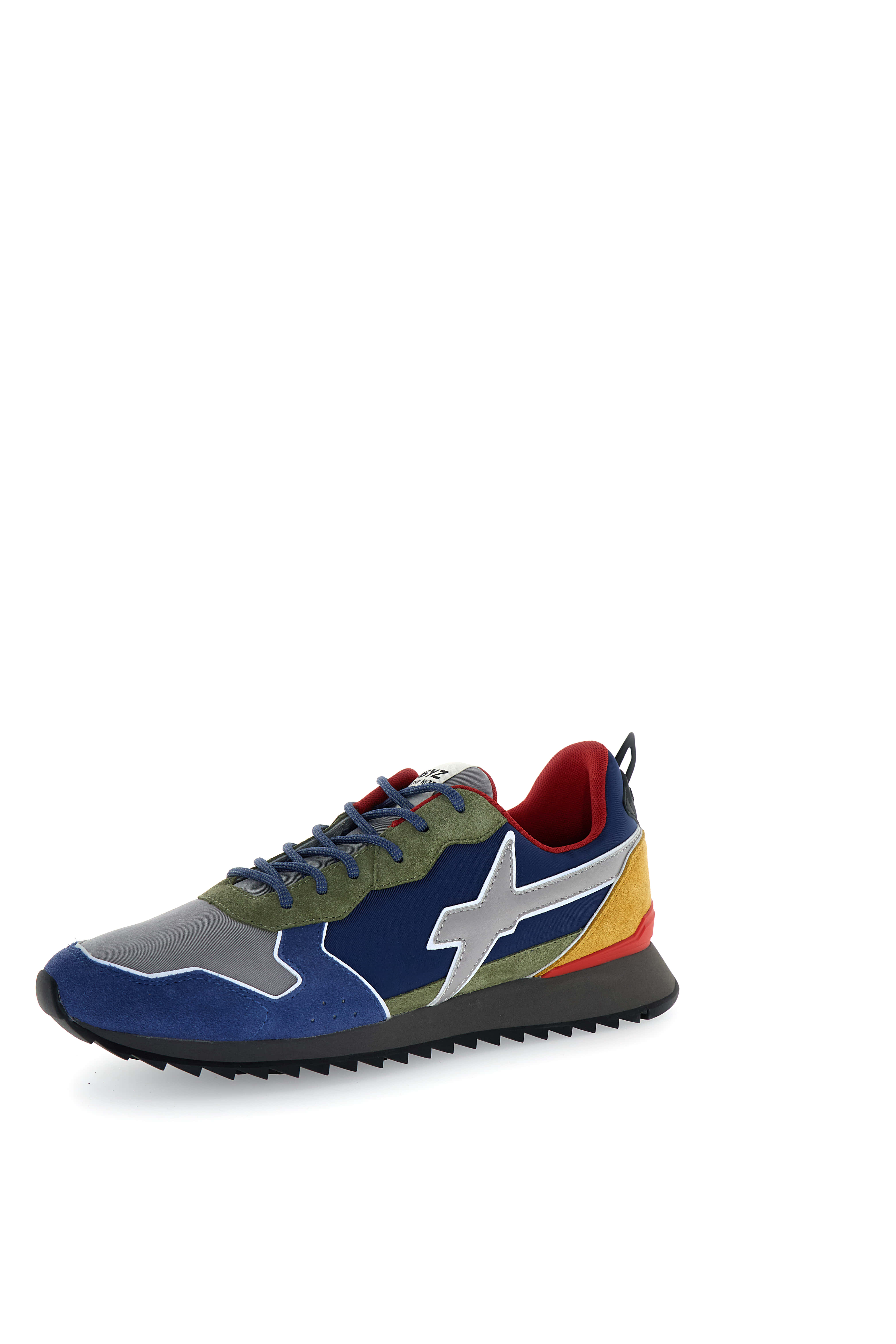 Sneaker in tessuto tecnico e suede bicolor con suola in gomma e logo a contrasto